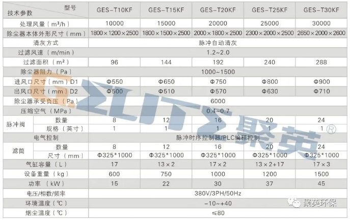 分體式濾筒除塵器技術參數