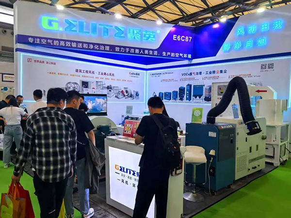 本次展會上,浙江聚英展示了過濾凈化風機箱、離心風機、濾筒除塵器以及AI智能煙塵凈化裝置,吸引了大量環保行業從業者、技術專家以及采購商的關注,全方面給客戶展示產品詳細、具體的應用場景,讓客戶一目了然。