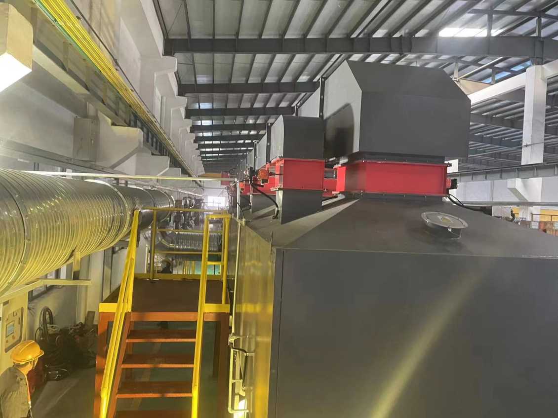 前端漆霧顆粒經(jīng)過(guò)干式漆霧墻進(jìn)行漆霧顆粒的收集后進(jìn)入緩沖管內(nèi)做勻風(fēng)處理,勻風(fēng)后廢氣在負(fù)壓引風(fēng)機(jī)的作用下進(jìn)入經(jīng)過(guò)干式過(guò)濾箱內(nèi)部初效、中效、高效三級(jí)過(guò)濾后,進(jìn)入處理系統(tǒng):活性炭吸附脫附催化燃燒凈化系統(tǒng)。