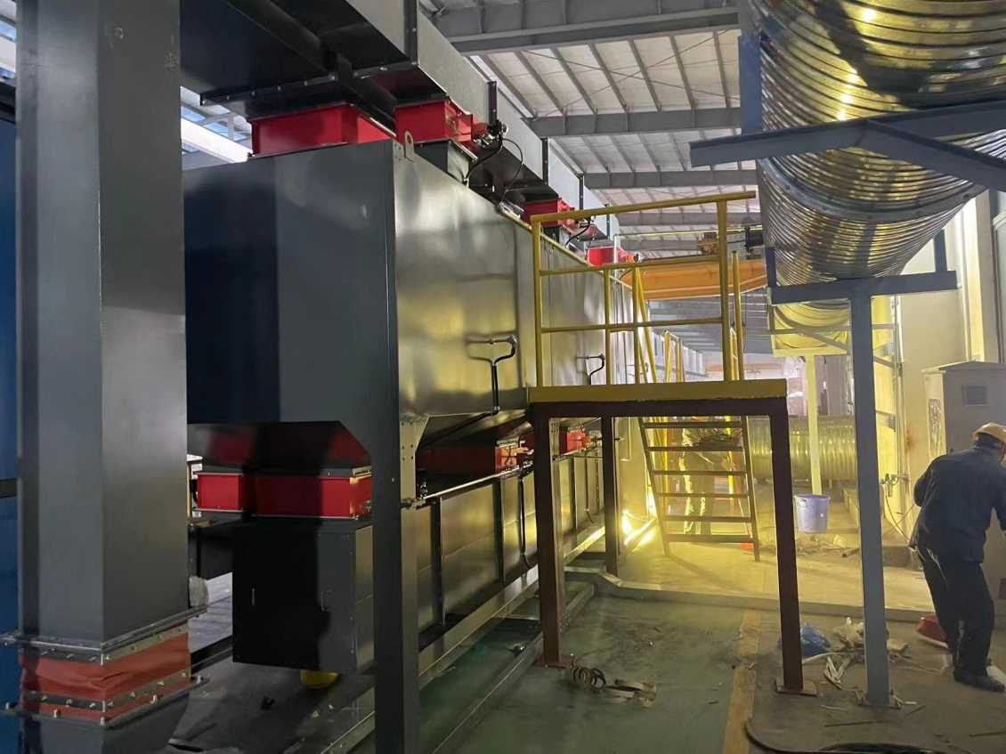 移動(dòng)伸縮房 → 干式漆霧凈化墻 → 管路收集 → 干式過(guò)濾 → 活性炭吸附脫附催化燃燒設(shè)備→風(fēng)機(jī) → 達(dá)標(biāo)排放